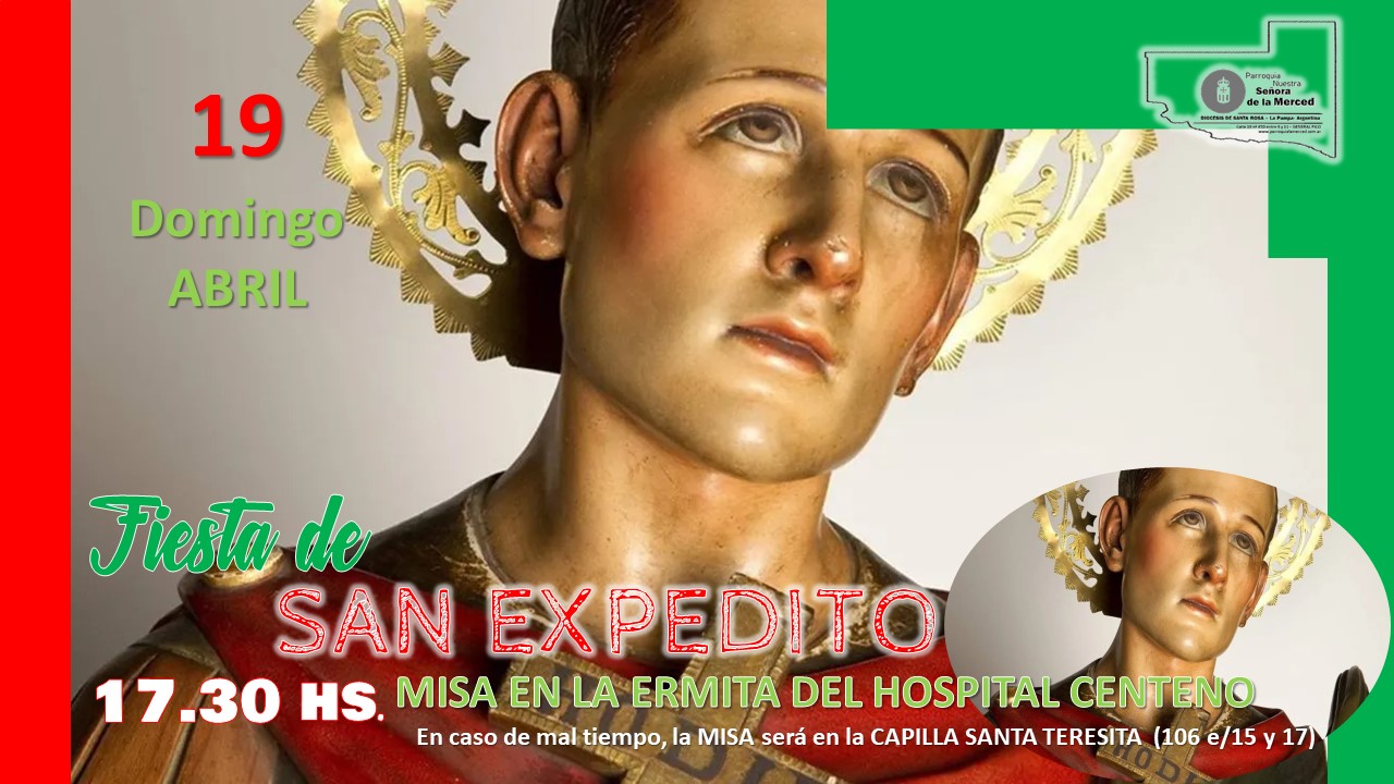 En el día de hoy, a partir de las 17 hs., celebrando la memoria de San Expedito, compartiremos la celebraciòn de la Santa Misa en la Ermita dedicada en su honor en la entrada de la Guardia del HOSPITAL GOBERNADOR CENTENO. En la oportunidad bendeciremos objetos religiosos, llaves de vehiculos y de hogares. Despues de la celebración compartiremos en este medio, algunas imagenes de la celebración…!