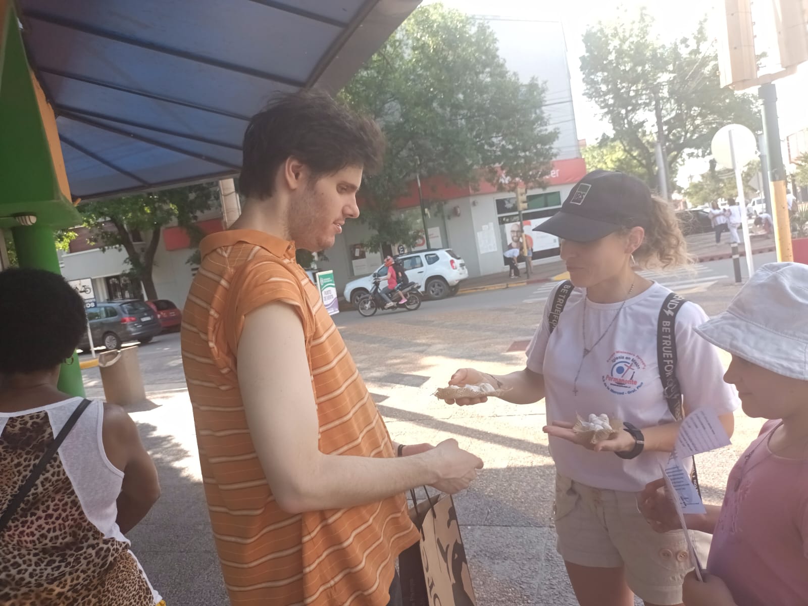 En el contexto de sus actividades misioneras del año, el Equipo Misionero Parroquial, acompañado por los voluntarios de Caritas La Merced quisieron compartir la Buena Noticia de la Navidad con la gente de a pie que recorre las calles de la ciudad y realizaron dos gestos misioneros con el Niño Dios en las esquinas de calle 20 y13 el 15 de Diciembre y en la esquina de 20 y 15 (Plaza Seca) el 22 de Diciembre.-